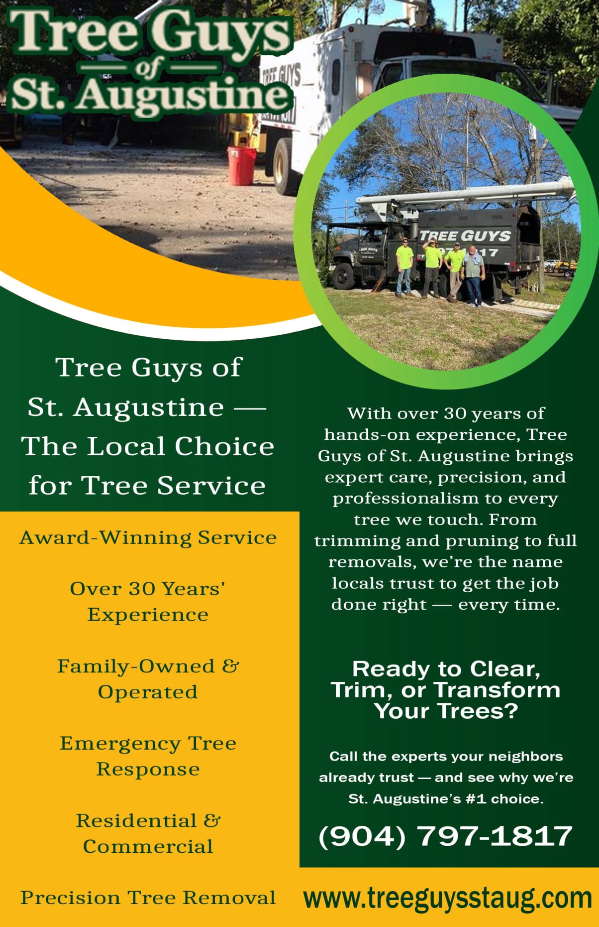 With decades of hands-on experience, Tree Guys of St. Augustine is the name home and business owners trust for expert tree care. From precision pruning to full tree removals, we deliver safe, reliable, and efficient service with a personal touch.